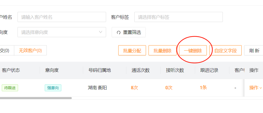 公海页面新增【一键删除】按钮,可以一键删除当前筛选条件下的所有客户数据