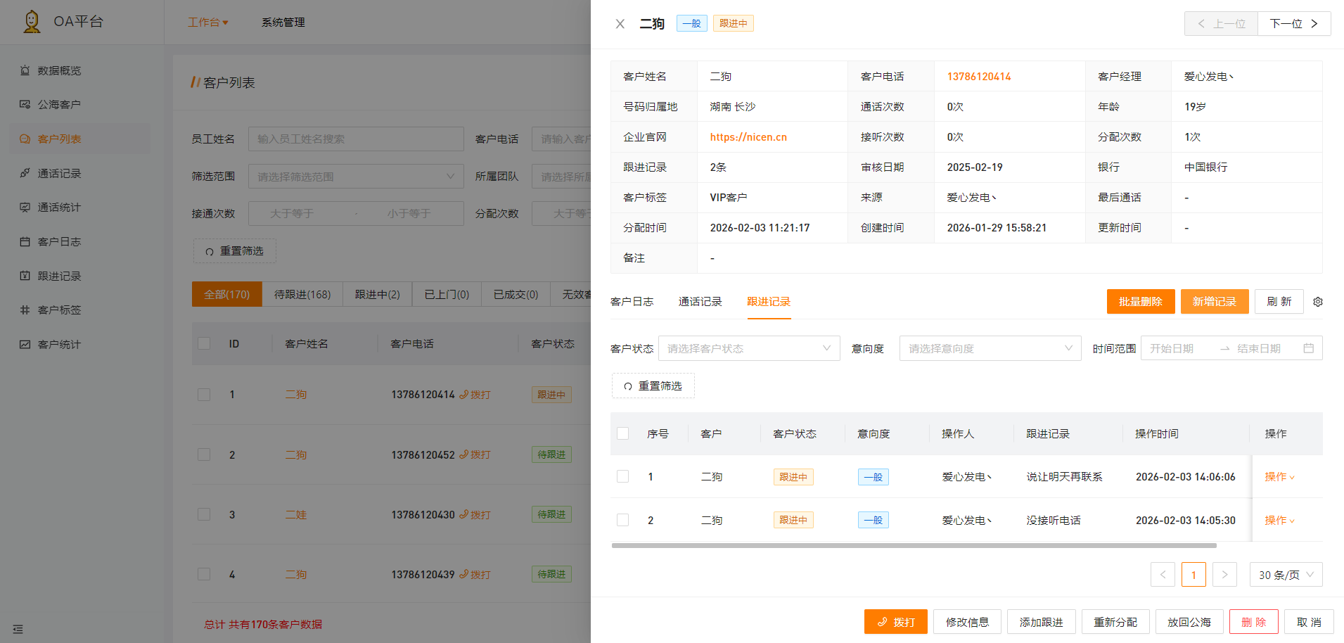 客户列表和客户公海 新增【号码归属地】筛选、【通话次数】筛选、【接通次数】筛选