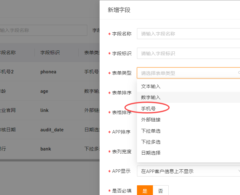 自定义字段新增了一个选项【显示设置】,可以设置这个字段 是否在APP客户列表的客户信息中展示。